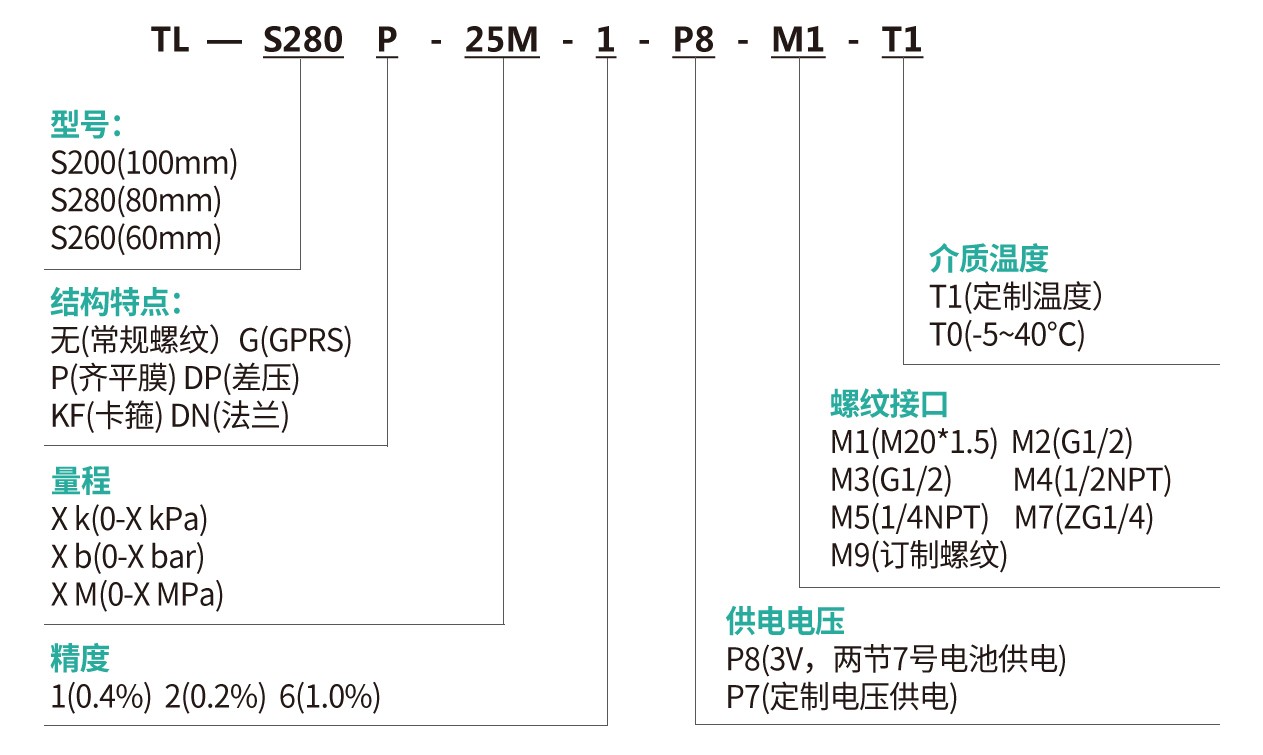 | 压力接口 | M20*1.5,G1/4,NPT1/4或定制螺纹 |